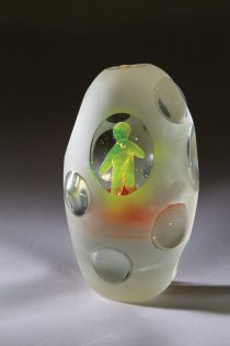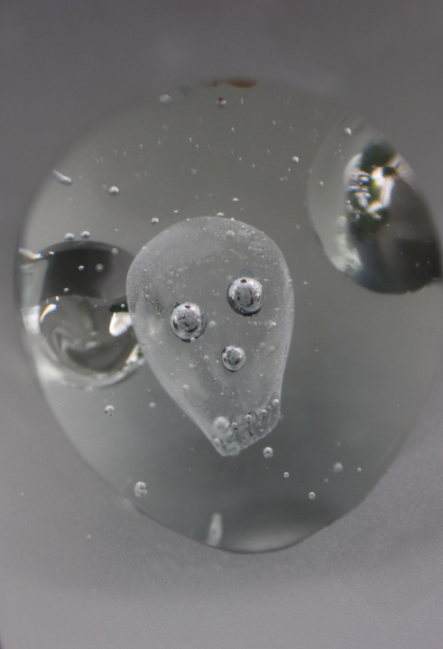 Sculptures en verre, disséminées de lentilles convexes et concaves – on ne voit jamais entièrement ce que la pièce renferme, il n’en est donné à voir que des bribes.